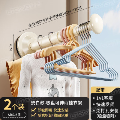 丽佳邦吸盘晾衣架奶白款吸盘可伸缩挂衣杆2个装