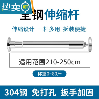敬平免打孔伸缩杆304不锈钢浴室浴帘杆卫生间晾衣杆衣柜撑杆窗帘挂杆 [伸缩款]304钢扳手加固(伸缩范围210