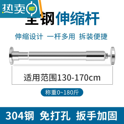 敬平免打孔伸缩杆304不锈钢浴室浴帘杆卫生间晾衣杆衣柜撑杆窗帘挂杆 [伸缩款]304钢扳手加固(伸缩范围130