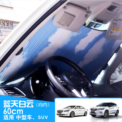 汽车双层蜂窝状防晒隔热遮阳帘遮光帘遮阳板前挡遮阳挡风玻璃罩布车内用神器 60cm 蓝天白云向内