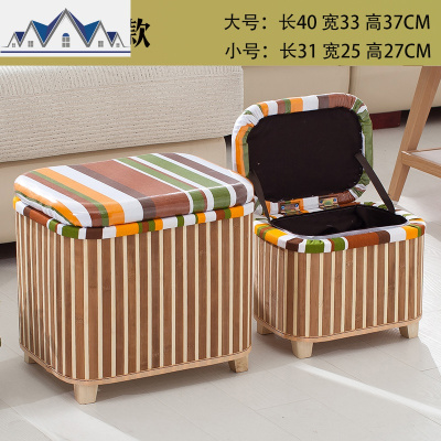 竹编收纳凳储物凳简约换鞋凳儿童穿鞋凳实木坐凳储物箱可坐人 三维工匠
