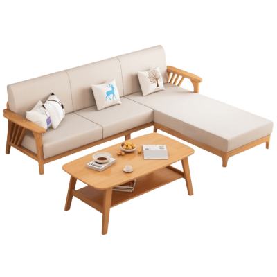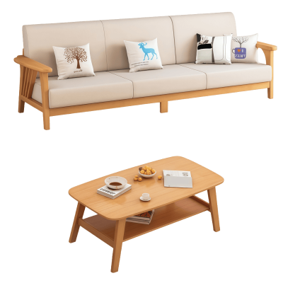 鑫木樽实木沙发四人位+脚踏+茶几套