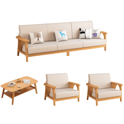 鑫木樽实木沙发三人位+脚踏+茶几套