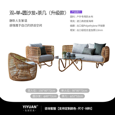质凡户外沙发藤椅组合双人庭院花园露台室外休闲防雨防晒藤编民宿家具