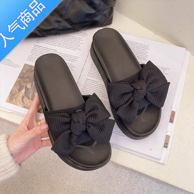 SUNTEK黑色蝴蝶结一字拖鞋女夏季外穿2023新款松糕厚底防滑高级感凉拖鞋
