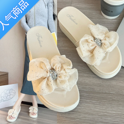 SUNTEK凉拖鞋女外穿时尚松糕跟厚底拖鞋高级感蝴蝶结海边沙滩鞋小香风