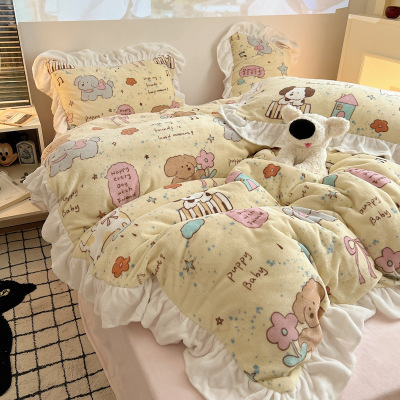 一室温暖 | ins卡通A类花边款牛奶绒四件套冬季珊瑚绒被套三件套4