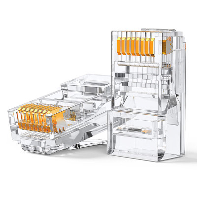 绿联六类网线水晶头 6类千兆网络接头 CAT6镀金工程级RJ45电脑连接器适用超六类非屏蔽网线 100个
