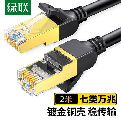 绿联七类圆形双屏蔽全铜网线 黑色 2米 NW107/11269 10个起订 单个价格(货期3-6天).