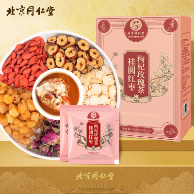 北京同仁堂 人参红枣桂圆枸杞茶 玫瑰花茶女人元气大姨妈八宝茶10g*20包/盒 1盒 200g