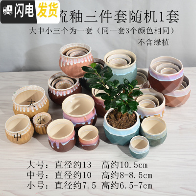 三维工匠陶瓷花盆多肉绿萝吊兰盆栽 家用阳台室内创意 亚光流釉三件套随机1套 中等花盆容器