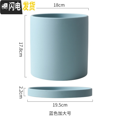 三维工匠陶瓷花盆直筒圆柱形 北欧ins多肉绿植鲜花绿萝盆栽带托盘 湖蓝色圆蓝色18cm 中等花盆容器