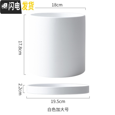 三维工匠陶瓷花盆直筒圆柱形 北欧ins多肉绿植鲜花绿萝盆栽带托盘 其他颜色圆白色10.6cm 中等花盆容器