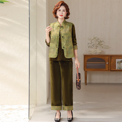 金丝绒洋气妈妈装三件套中老年女装气质婆婆装国风中年春装金丝绒