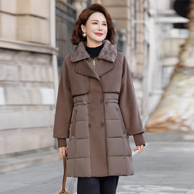 年拼接款妈妈装保暖外套冬装女加厚女装中老人冬季大衣中长款