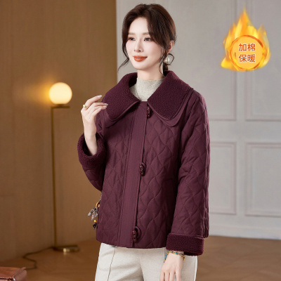 新款冬装妈妈外套女洋气中老年人韩版休闲棉服大衣大翻领冬季棉衣