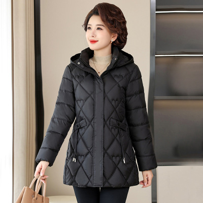 连帽妈妈装中老年人保暖冬装外套连帽女士休闲大衣棉服女40-60岁