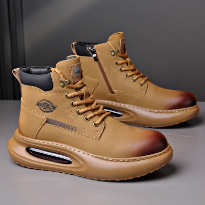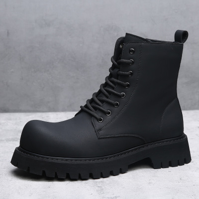 新款加绒马丁靴男士厚底增高工装皮靴子保暖加厚男鞋户外雪地