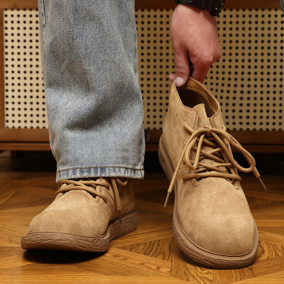 轻奢复古工装沙漠靴秋季新款马丁靴男款反绒皮中帮真皮短靴子