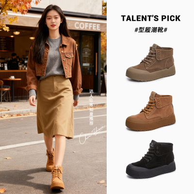 新款马丁靴女冬季新款复古洋气短靴厚底休闲百搭美拉德靴子女