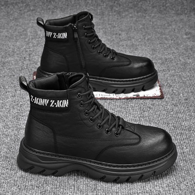 男士秋季上新款拉链款纯色简约马丁靴皮革透气休闲时尚假系带靴子