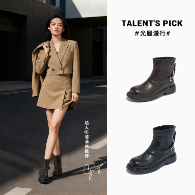 真皮复古马丁靴女冬季新款厚底切尔西靴女百搭靴子瘦瘦短靴女