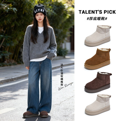 新款复古雪地靴女冬季加绒加厚保暖棉鞋厚底增高短靴百搭靴子