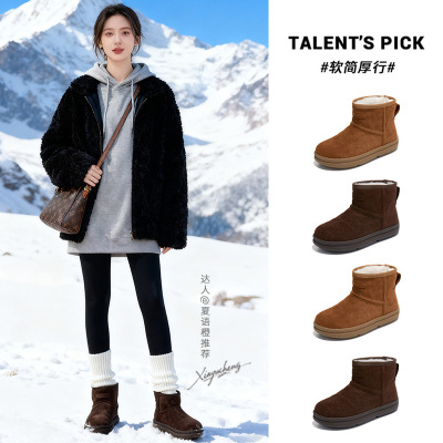 真皮雪地靴女冬季新款平底加绒棉鞋休闲百搭毛毛鞋保暖靴子女