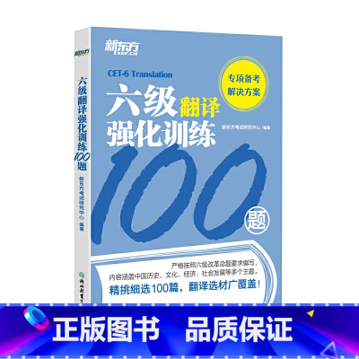 [正版]新东方 大学英语六级翻译强化训练100题 cet6翻译专项 可搭听力训练高分写作张剑六级真题西安新东方大愚