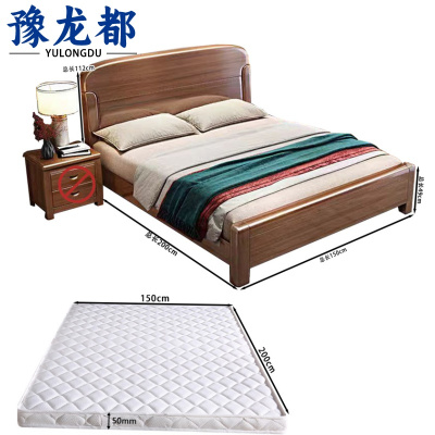 豫龙都 中式实木床+床垫 150*200cm 套