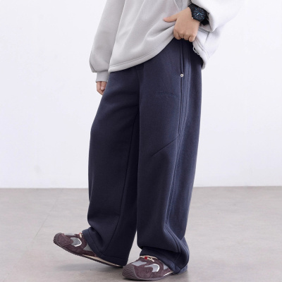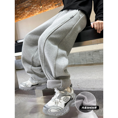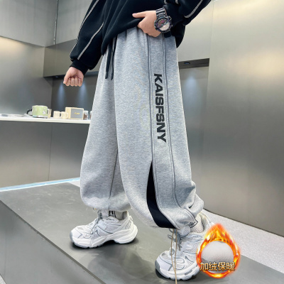 男童裤子秋冬装新款初中生加绒直筒阔腿卫裤帅气一体绒运动裤