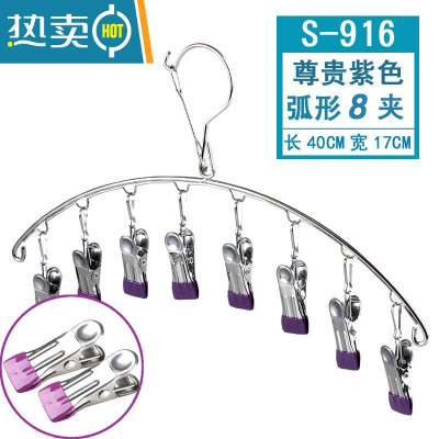 敬平 不锈钢袜架多夹子多功能防滑晒袜子夹家用防风晾衣夹衣架 S-916-8夹紫色