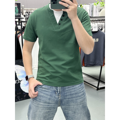 夏装新款高货短袖T恤男士半袖打底衫假两件扣子半袖潮流男装上衣