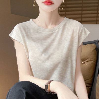 圆领短袖薄款韩版T恤显瘦夏季百搭打底衫小飞袖软糯上衣包袖半袖