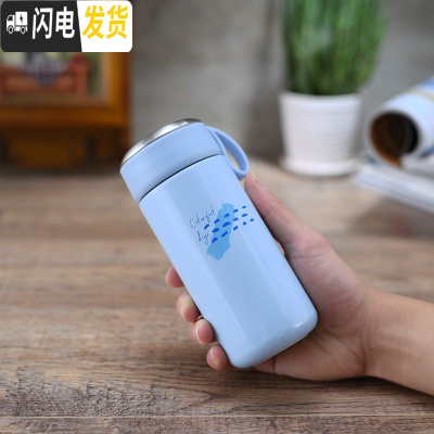 三维工匠保温杯300男女学生小巧便携杯304不锈钢清新户外真空防漏杯 蓝色斑驳300