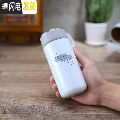 三维工匠保温杯300男女学生小巧便携杯304不锈钢清新户外真空防漏杯 白色斑驳300