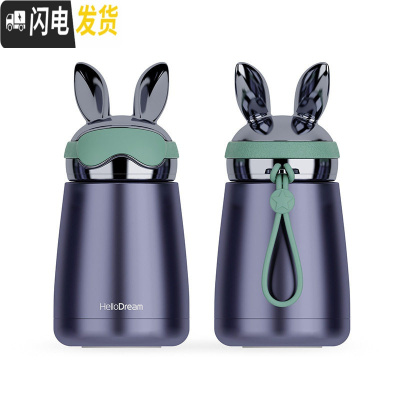 三维工匠2019新款韩版可爱不锈钢卡通小兔保温杯时尚男少女便携水杯可定制 新款钻石蓝