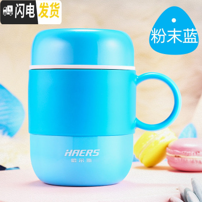三维工匠 不锈钢真空保温杯可爱女士 时尚水杯 带手柄学生杯子 粉末蓝280