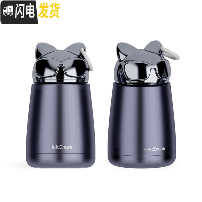 三维工匠保温杯女学生韩版清新文艺可爱便携迷你不锈钢成人水杯子 儿童黑