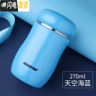 三维工匠便携保温杯少女304不锈钢小巧可爱韩版文艺学生水杯子创意 天空蓝14#