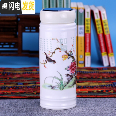 三维工匠景德镇双层全陶瓷保温杯带盖泡茶水杯办公室随手男女士养生杯礼品 吉祥如意