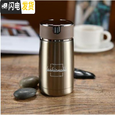 三维工匠保温杯小巧便携男女学生创意简约随手杯304不锈钢泡茶杯 1金色字母230送杯刷