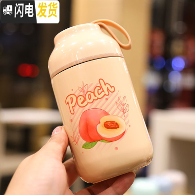 三维工匠矮胖小巧可爱保温杯原宿风ins清新学生随手杯子男女士便携水杯子 橘黄桃子3004C4