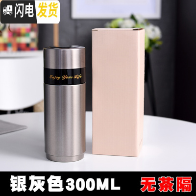 三维工匠陶瓷保温杯女瓷内胆养生水杯商务车载便携男士泡茶杯送礼刻字 银灰色300无茶隔适合放包包6-9H
