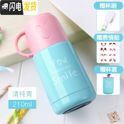 三维工匠保温杯女便携迷你水杯容量200超可爱带盖儿童小巧创意萌杯子 青色210+杯套+杯刷+贴纸