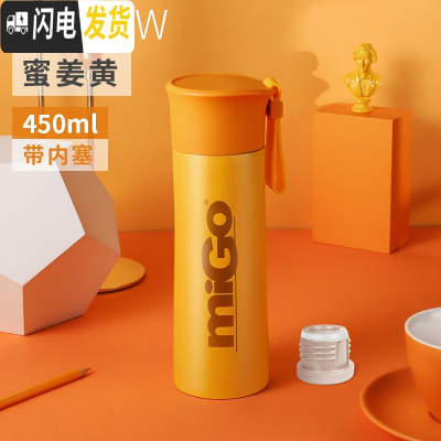 三维工匠保温杯男保温壶大容量不锈钢儿童学生简约杯子水杯女小巧便携 蜜姜黄450-带内塞