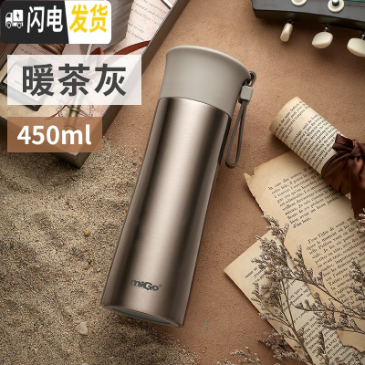 三维工匠保温杯男保温壶大容量不锈钢儿童学生简约杯子水杯女小巧便携 暖茶灰450-带内塞