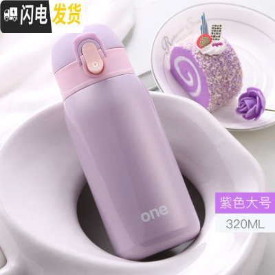 三维工匠保温杯女迷你小学生便携女童韩版水杯男孩儿童防摔超可爱简约杯子 可爱紫