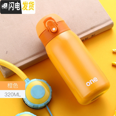三维工匠保温杯女迷你小学生便携女童韩版水杯男孩儿童防摔超可爱简约杯子 可爱橙