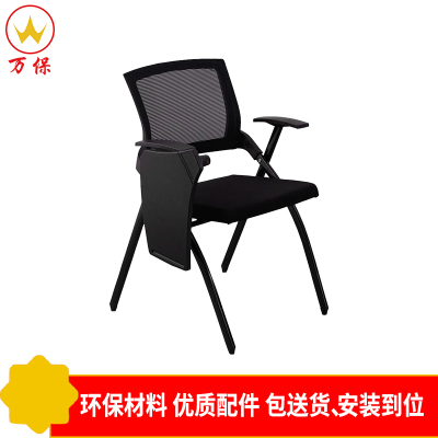 <万保>办公椅 会议椅 网椅 接待椅 简约现代休闲椅 扶手带写字板 黑色